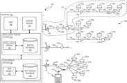 According to an example, fibermonitoring system database174 may store fiber monitoring data fromfiber monitoring system175.Fiber monitoring system175 may include an optical time domain reflectometer (OTDR) to characterize an optical fiber. An OTDR injects a series of optical pulses into a fiber Under test and extracts, from the same end of the fiber, light that is scattered (Rayleigh backscatter) or reflected back from points along the fiber. An OTDR may use course wavelength division multiplexing in multiple wavelengths to determine wavelength routes or pin point faults. An OTDR may determine a fault location in an optical fiber without disrupting traffic on active channels. Data originating from the OTDR may be stored as the fiber monitoring data.