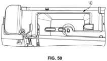FIGS.40-42 show various views relating to an exemplary sewing projection feature of an exemplary sewing machine;