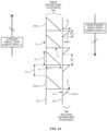 As shown inFIG.4C, the plot illustrates thefirst signal408aand thesecond signal408bover a time period with various signal characteristics that correspond to the characteristics of the plurality ofgeometric features204aand204bofFIG.4A. As noted above, the signals in the plot can include signal characteristics such as pulse decay time characteristics, amplitude characteristics, pulse repetition frequency characteristics, and intra-pulse frequency characteristics. For example,first signal408acorresponds to features206a-1 to206a-4 and thesecond signal408bcorresponds to features206b-1 to206b-4 ofFIG.4A in which vibrations are produced an object moves along the second direction (e.g., downward direction). In the illustrated example, thefirst signal408aand thesecond signal408brespectively include signal characteristics such aspulse decay time410aand410b,intra-pulse frequency characteristics436 and436b(represented in time), andamplitude414aandamplitude414b. The first and second signals also have shared characteristic of apulse repetition frequency440. Thefirst signal408aincludes pulse416a-1 to4416a-4 and each pulse corresponds to each feature of features206a-1 to206a-4 ofFIG.4A. Thesecond signal408bincludespulse416b-1 to416b-4 and each pulse corresponds to each of thefeatures206b-1 to206b-4 ofFIG.4A.