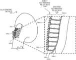 FIG.5 is a block diagram illustrating anelectronic device102 according to examples of the disclosure. In some examples, theelectronic device102 includes a textured surface as described herein. The electronic device can be, for example, one or more ear buds, headphones, cellular phones, laptops, desktop computers, tablets, keyboards, styluses, etc. In some examples, theelectronic device102 can include a power source502 (e.g., battery),memory504,wireless communication circuitry506, inertial measurement unit (IMU)508,piezoelectric sensor510,accelerometer512,microphone514,gyroscope516, andprocessing circuitry518. It is understood that theelectronic device102 can have a subset of these components or additional components (e.g., touch screen, track pad, display, proximity sensors, other sensors for sensing vibrations, etc.).