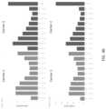 FIG.35 is a graph of distribution of users by average downlink Physical Resource Block (PRB) allocation. Real-time monitoring shows downlink resources allocated to each user. Allocations occur many times per second. A significant concentration of users on 739 MHz are allocated resources for voice service. Most users on 2165 MHz are allocated resources common for high-speed data.