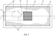 In oneembodiment fan36 comprises a centrifugal fan design, or alternatively, a backward curved blade design. Depending on the size of pet bed platform to be filtered, the CFM should change. Most animal housing for pets would be in a range of 80 to 250 CFM, though larger pet bed platforms may require use of a 220 to 2000 CFM fan design. The noise level is preferably between about 20 to 60 db to be pleasant for the animal. In the illustrated embodiment,fan36 is a centrifugal fan with 165 CFM rating. The fan size is 4″ deep and 9″ diameter, this can be smaller or larger depending on RPM of the fan and how quiet it operates.