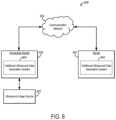 In some embodiments,communication network854 can be any suitable communication network or combination of communication networks. For example,communication network854 can include a Wi-Fi network (which can include one or more wireless routers, one or more switches, etc.), a peer-to-peer network (e.g., a Bluetooth network), a cellular network (e.g., a 3G network, a 4G network, etc., complying with any suitable standard, such as CDMA, GSM, LTE, LTE Advanced, WiMAX, etc.), a wired network, etc. In some embodiments, communication network108 can be a local area network, a wide area network, a public network (e.g., the Internet), a private or semi-private network (e.g., a corporate or university intranet), any other suitable type of network, or any suitable combination of networks. Communications links shown inFIG.8 can each be any suitable communications link or combination of communications links, such as wired links, fiber optic links, Wi-Fi links, Bluetooth links, cellular links, and so on.