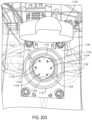 Referring now toFIG.275, an exemplary embodiment of theweld opening2016 shown inFIGS.273-274 is depicted. As shown, thesupport plate2202 may be mounted to astationary body2216 included in thesystem10. The compression element2204 (a roller in the example embodiment) may be mounted on aboom2218 coupled to an output of arotary actuator2212. Therotary actuator2212 may be coupled to a mountingplate2220. The mountingplate2220 may be coupled to at least one linear actuator2214 (two are shown inFIG.275). Twolinear actuators2214 are shown in the example embodiment. One of thelinear actuators2214 may be replaced with a guide along which the mountingplate2220 may slide in alternative embodiments. Thelinear actuator2214 may be powered to displace therotary actuator2212,boom2218, andcompression element2204 along a displacement axis oriented perpendicular to supportplate2202. As therotary actuator2212 is powered, theboom2218 andcompression element2204 may be swung about a pivot axis of theoutput shaft2222 of therotary actuator2212. When thecompression element2204 is against theraceway2200 of thesupport plate2202, thecompression element2204 may be swung along the length of theraceway2200. Thecompression element2204 may include raiseregions2205. The raisedregions2205 may ride alonggrooves2207 in thesupport plate2202 which may serve to guide thecompression element2204 along theraceway2200.