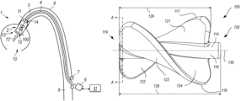 In some embodiments, the at least one rotor blade may be helically wound around the hub. As shown inFIG.2B, in some embodiments, the at least one blade may be configured such that the rotor may have a maximumouter diameter127 of 5-6 mm in the running state. In some embodiments,portions125 and126 are portions ofblades117 and118, respectively, that are disposed directly adjacent tohub116, and may be configured to extend away As shown,portions125 and126 extend along aradial axis140 that orthogonally traverses the axis of rotation (e.g., central axis130) ofrotor100 and extends through the center ofhub116. It is to be appreciated that, as seen in the cross-sectional views of rotor5 (FIG.2A),portions125 and126 (FIG.2B) extend from the hub as illustrated inFIG.4C (i.e., along radial axis140) along at least a portion of a length of the hub (i.e., fromdistal end119 some or all of the way toproximal end120 of hub116).