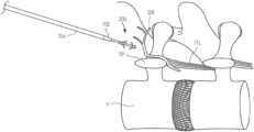 Using fluoroscopy, acoustic, anatomic, or CT guidance,dilator704 is delivered transcutaneously and transmuscularly to a target site, e.g., in or adjacent to tissue associated with control of the lumbar spine. Such tissue may include nervous tissue, muscle, ligament, and/or joint capsule. In one embodiment, muscle includes skeletal muscle such as the multifidus, transverse abdominus, quadratus lumborum, psoas major, internus abdominus, obliquus externus abdominus, and erector spinae muscles and nervous tissue includes a peripheral nerve that innervates skeletal muscle. In a preferred embodiment, nervous tissue comprises the dorsal ramus nerve, or fascicles thereof, that innervate the multifidus muscle.