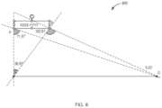 A projection angles between the link and a baseline of the text label feature may indicate multiple angles between the link and baseline. In one implementation it may include the four angles created when each of the endpoints of a line segment representing the link are projected to each of the endpoints of the baseline of the text label, and when each the endpoints of the baseline of the text label are projected to the endpoints of the line segment representing the link. The angles are akin to a field of view (FOV).FIG.8 is a diagram800 illustrating examples of calculation of projection angles between a link and a baseline of a text label. The baseline of the text label is represented as a line segmentAB and the link is represented by a line segmentCD. At each endpoint A-D an angle (here, 71.57°, 102.91°, 36.87° and 5.53°) is computed.