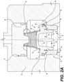 As shown in, for example,FIG.2E, thevalve head68 may have a radial cross-section including aflange face114 facing substantially parallel to the first direction D1. The radial cross-section of thevalve head68 further may include aflange edge116 extending substantially axially in a direction substantially parallel to the valve body axis X. Theseal engaging surface72 may at least partially define a radial cross-section, and the radial cross-section of theseal engaging surface72, in at least some embodiments, may include areturn edge118 extending radially inward from theflange edge116 and terminating at aneck edge120 of theseal engaging surface72 at least partially defined by aneck122 of thevalve body52. The radial cross-section of theseal engaging surface72 further may include apocket edge124 extending from theneck edge120, thereby to at least partially form anannular pocket126 positioned to receive thevalve seal54. As shown, in some embodiments, thepocket edge124 may extend obliquely relative to the valve body axis X and radially outward. The radial cross-section of theseal engaging surface72 further may include anaxial edge128 extending axially from thepocket edge124 to aconical edge130 at least partially defined by the radial cross-section ofvalve body52. Theconical edge130 may extend radially inward and obliquely relative to the valve body axis X. In some embodiments, the radial cross-section of theseal engaging surface72 also may include aseal retainer lip131 at an intersection between theflange edge116 and thereturn edge118, and theseal retainer lip131 may extend axially in a direction substantially the same as the second direction D2.