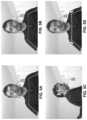 FIG.4A illustrates an exemplary process and output after applying the First Pass of the disclosed two-pass procedure ofextended face tracker104 to the sequence of labeled video frames204 inFIG.2 generated by top-downface detector102 in accordance with some embodiments described herein. As can be seen inFIG.4A, after processing the sequence of labeled video frames204 in the forward direction usingextended face tracker104, an exemplary sequence of temporally-processed video frames406 is obtained. This exemplary sequence of temporally-processed video frames406 is shown to include two types of frames: