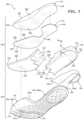 Referring toFIGS.2-4, theouter shell116 of theoutsole104 extends from afirst end178 at theanterior end18 of the article of footwear10 to asecond end180 at the posterior end of the article of footwear10. Accordingly, theouter shell116 extends along the full length of the article of footwear10. Theouter shell116 includes a ground-engagingelement182 extending continuously from thefirst end178 to thesecond end180, and aperipheral wall184 extending from the ground-engagingelement182 along a perimeter of theouter shell116.