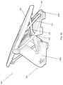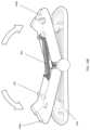Thebands100 can be installed in thedevice400 such that there is some degree of tension in each of therespective bands100 at all times, regardless ofdevice400 configuration. For example, thebands100 can maintain some degree of tension even when thedevice400 is fully collapsed, which is the point when there is the smallest distance between twoconnected hooks402 and theband100 can be at a minimum deformation, or “stretch”. When thedevice400 is in the collapsed configuration, the tension on theband100 can help to hold the device closed, bringing the base and the footplate together. The tension in theband100 can also be sufficient to ensure that the band will not fold over on itself or deviate from its position to interfere with thefootplate404 and/orbase portion406 meeting when the device is collapsed. Threading of eachband100 from thehook402 on thefootplate404 to thecontralateral hook402 on the base, can guide the band to stow in a position within the collapsed device and can help to draw thefootplate404 andbase406 toward one another. The twobands100 at each end of thedevice400 can cross over one another in low profile securing the collapsed configuration.