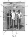 FIG.9 shows an example of performing human body measurements of threepersons94,95 and96 (anthropometric measurements) from an image90 (i.e., height, chest width, shoulder width, waist height and more, e.g., as schematically indicated by the illustratedarrows97,98 and99) by usingvirtual boards91,92 and93 (similar to those shown inFIG.8B), where the size of the squares in the grid of each virtual board can be used to calculate and extract the dimensions of an object that appears in the video stream. In this example, virtual boards92-94 are placed as virtual layers on top of the three persons94-96 and are used to calculate body measurements of these persons. Of course, other objects can be measured, and the virtual boards can be used for other usages. For example, the coordinate matrix can be used for different applications in order to extract objects' measurements from a video stream.