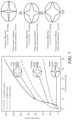 FIG.7 are various schematics of the shunt at different pressures of the left atrium to the right atrium and the correlation of the blood flow rate to the pressure difference from the left to right atrium of the heart.