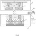 RegardingFIGS.1-4, deposition is any process that grows, coats, or otherwise transfers a material onto the wafer. Available technologies include, but are not limited to, thermal oxidation, physical vapor deposition (PVD), chemical vapor deposition (CVD), electrochemical deposition (ECD), molecular beam epitaxy (MBE) and more recently, atomic layer deposition (ALD) among others. As used herein, “depositing” can include any now known or later developed techniques appropriate for the material to be deposited including but not limited to, for example: chemical vapor deposition (CVD), low-pressure CVD (LPCVD), plasma-enhanced CVD (PECVD), semi-atmosphere CVD (SACVD) and high density plasma CVD (HDPCVD), rapid thermal CVD (RTCVD), ultra-high vacuum CVD (UHVCVD), limited reaction processing CVD (LRPCVD), metal-organic CVD (MOCVD), sputtering deposition, ion beam deposition, electron beam deposition, laser assisted deposition, thermal oxidation, thermal nitridation, spin-on methods, physical vapor deposition (PVD), atomic layer deposition (ALD), chemical oxidation, molecular beam epitaxy (MBE), plating, evaporation.