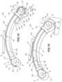 The resistance provided by thesystem40 varies depending upon whether thesecond end52 of theleaf spring50 is engaging thestop wall80, creating two or more distinct phases. In an initial phase referred to as first phase P1 (discussed further below and shown inFIG.6), the resistance provided by theleaf spring50 against movement between themobile portion42 and thebase20 is primarily provided via bending deformation of theleaf spring50. In other words, the body length L of theleaf spring50 may change, increasing as themobile portion42 moves towards thebase20. However, once thesecond end52 engages with thestop wall80 of the end stop70 (orsecond pin82 extending therethough for an embodiment discussed further below), which is been fixed relative to thebase20, a second phase P2 begins in which a body length L of theleaf spring50 can no longer change. At this stage, further movement of themobile portion42 towards thebase20 is resisted by theleaf spring50 primarily by compressing theleaf spring50, rather than by bending theleaf spring50 as provide during phase1 P1. In other words, the parabolic shape can no longer get wider longer, and thus theleaf spring50 starts to compress. In certain embodiments, the term “primarily” with respect to the basis for resistance means the basis has a greater contribution than any other basis (i.e., bending contributing to the resistance more than compressing contributes to the resistance). In certain embodiments, the basis having the greatest contribution provides more than 50% of the total resistance. In certain configurations, approximately 50%, 70%, 80%, 90%, 95%, or other portions of the stiffness is provided inphase2 P2.