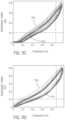 Additional testing results for a fitness machine1 andsystem40 as shown inFIGS.2-4 are provided inFIGS.9A-9D, which were tested on a hydraulic MTS® test system in which theleaf springs50 were compressed for 0.45 inches in the height direction HD in 2 Hz and 5 Hz sinusoidal motion-controlled mode. In the plots, the horizontal axes represent the amount of compression (the same for the four plots), while the vertical axes represent the applied forces to reach the corresponding deformations. The scale of the vertical axes is kip, or 1000 lbf.