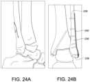 FIG.23 is a posterior view of distal portions of a tibia and fibula with a lateral distal fibula locking plate according to one embodiment of the invention installed on the fibula. Generally,plate200 also contains ahead214, a generally elongatedshaft216 and atransition portion218 which generally connects thehead214 andshaft216.Plate200 includes anexterior surface202, a bone contacting or partially bone contactinginterior surface204, aleft edge206, aright edge208, ahead end210 and ashaft end212.Exterior surface202 may be generally convex, flat, or shaped as otherwise desired.Interior surface204 may be generally concave, flat, or shaped as otherwise desired.Interior surface204 can contain one or more indentations or undercuts which traverse across theinterior surface204 to modify flexibility of the plate, reduce bone contact, or other purposes.