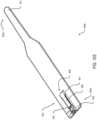Modular blade420 may extend from aproximal end420pto adistal end420din a proximal-to-distal direction (may also be referred to as longitudinal direction). Theproximal end420pmay include anengagement feature426 having spring loadedtabs427 for coupling to a blade engagement mechanism in the same, similar, and/or substantially the same way as explained above. Thedistal end420dmay include atip portion421. In the example embodiment,tip portion421 comprises a substantially planar outer surface that tapers towards a centerline ofmodular blade420 and terminates as a blunt chisel shaped end having a relatively smaller thickness than the remaining portions ofmodular blade420, for example. As best seen inFIG.95, in some embodiments tipportion421 may curve inward and/or arc inward in various embodiments, for example.Modular blade420 may include a pair ofrails424aand424bthat extend fromproximal end420ptowardsdistal end420d. For example, afirst rail424amay extend along a first lateral side ofblade420 in the proximal-to-distal direction and asecond rail424b, oppositefirst rail424a, may extend along a second lateral side ofblade420 in the proximal-to-distal direction. In various embodiments,modular blade420 may be symmetrical on either side of a centerline extending in the proximal-to-distal direction, for example.