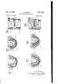 It-is to be noted that the toothpositioning appl ance 38 is thus formed with upper and lower teeth impressions in positions of ultimate movement of the teeth of the intended wearer and that these positions are located for the relaxed rest position of the teeth. Thus, allowance is made for the fact that the teeth of a wearer of the appliance to shouldbe in the rest or slightly open position when surrounded by theappliance 30. This allowance eliinnates strain on the part of the wearer of the appliance 3B and permits a suitable thickness of material between the upper. andlower portions 32 and 33 of the app one 0 so t e ehhie eh bqd ie erol ded tolhelit its teeth etre shteh h hettfe' itha eeh i deer rom the .fo eed e. th e etiohs io l t tee h o leete od l .ehd 8' i h e. ehd u r ee e a d 4 wh e eted th spe d e d by the eh er eleme 9.5. e h et e s tha o th eee hded ooeitieh o he te thieh f th .e e s sht pened osition of the teeth (Figs. 13 and 16) A w n e is mad i th d fo h .V e that the lower teeth pivot downwardly and rear- ;wardly in the opening of the jaw about a pivot to th'e rear and above the line of closure of the teeth. A It is apparent that there has been provided a novel tooth positioning appliance, a novel flask for forming the same, and a novel method of forming the appliance which fulfill all of the objects and advantages sought in respect to each. It is to be understood that the foregoing description and the accompanying drawings'have been given by way of illustration and example. -Itis also to be understood that changes in form of the elements, rearrangement of parts or steps,