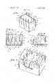 Adjacent the upper end of eachgroove 12f a pair of opposedlead retaining protuberances 12g define a space therebetween which is slightly less (several thousandths of an inch) than the diameter of the capacitor leads 13b so that as is apparent from FIGS. 4, 7 and 8, an inner portion of one of the leads can be forced or snapped through the space under slight pressure and downward into the groove, the protuberances having sufficient inherent resiliency for this purpose. The outer portion oflead 13b then is retained in thegroove 12f by theprotuberances 12g, which, as shown in FIGS. 3, 4, 7 and 8, are spaced inward from outer wall portions of the groove to permit the outer portion of the lead to move longitudinally in the groove during the assembling operation. While the protuberances 123 are shown in opposed pairs, it is apparent that other arrangements could be utilized. For example, theprotuberances 12g could be offset vertically on opposite or the same sides of theirrespective grooves 12f, or only a single protuberance could be provided for each groove, if so desired. During the molding of theshell 12, the protuberances 123 also function to help insure that a mold core member for forming the interior of the shell, will withdraw the shell out of a mold cavity for molding its exterior.