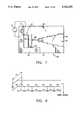 Turning now to FIG. 7, there is shown an active CPW stepped-notch antenna circuit 60 incorporating the present invention. The circuit includes a stepped-notch antenna 61 coupled to aCPW resonator 62 viaslotline 63. Thestepnotch antenna 61 is formed, in effect, by many step transformers which match the slotline impedance to free space. The antenna and resonator are fabricated on a 60 milthick substrate 64 of micro-fiber reinforced polytetrafluroethylene, sold under the trademark RT-Duroid 5870. This substrate material has a low relative dielectric constant of about 2.3, which promotes matching of thenotch antenna 61 to free space. AGunn diode 65 is mounted in a heat-sink 66 at the open end of theresonator 62. The Gunn diode, from M/ACOM, is rated at 72 mW.