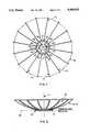 DESCRIPTION OF THE INVENTIONFIGS. 1 and 2 show front and side views respectively of a foldable reflector assembly in accordance with the present invention. A plurality ofrib assemblies 10 are mounted to abase assembly 12 around the base assembly'scentral axis 11. The rib assemblies are mounted for pivotal movement between a closed position, where the ribs extend forward from the base assembly, to an open position where the ribs extend substantially axially away from the base assembly. The open position of the rib assemblies is illustrated in FIGS 1 and 2 while FIGS. 3 and 4 show front and side views respectively of a reflector with rib assemblies in the closed position.