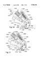 Any attempted counterclockwise movement of thegripper 2020 about thegripper pivot pin 2028 causes thegripper 2020 to move toward thebase 2017 of pull-uplever 2016 to forcibly retain the band therebetween. Two events provide this counterclockwise movement. Biasing forces are applied to thegripper 2020 by agripper spring 2024 which is seated within the pull-uplever 2016 and which acts on thegripper 2020 at a location offset from the gripper pivot in 2028. Since thegripper spring 2024 is disposed distally or rearwardly of thegripper pivot pin 2028, thegripper 2020 is biased toward a counterclockwise movement to provide the noted result. Pivoting of thehandle 2152 in a clockwise direction in the view illustrated in FIG. 50 likewise causes thegripper 2020 to attempt to pivot in a counterclockwise direction thegripper pivot pin 2028 and relative to the pull-uplever 2016. With thehandle pin 2156 being retained within a fixed position by thefork 2142 of the second toggle linkage set 2136 of thetoggle assembly 2124 in a manner discussed in more detail below, pivoting of thehandle 2152 in a clockwise direction in the view presented in FIG. 50 thereby causes the pull-uplever 2016 to pivot about thepin 2148 in a clockwise direction move away from thehead 2068 and to thereby advance the band relative to thehead 2068 to remove slack in the band and/or to increase the tension in the band. The band more specifically moves in the direction of the arrow A illustrated in FIG. 57 and which will be discussed in more detail below.