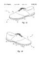 A further advantage of thegolf shoe soles 18 shown in FIGS. 3A-B and FIGS. 4A-B is that, while each sole emphasizes either stability or pivotability, both soles havetraction members 22 positioned to provide at least some degree of stability and at least some degree of pivotability. Accordingly, the right sole 18a, includes atransverse traction member 22b and does not completely restrict pivotal motion. Similarly, the left sole 18b includes anaxial member 22a to provide a degree of stability. This feature is advantageous because, while the golfer may wish to emphasize pivotal motion in one foot and stability in the other, both feet may require a level of both stability and pivotability during different phases of the golfer's back swing and forward stroke.