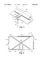A number offingers 24 are connected to theframe 12. Preferably, and as shown for example in FIGS. 1 and 5, eachfinger 24 is made of a rigid, elongated section of lightweight material such as round or square aluminum tubing resembling a reduced size variation of the material of theside members 14 and the cross-braces 16, although sections of solid aluminum stock or hollow or solid sections of other types of material may also be employed. Preferably, eachfinger 24 extends outwardly from theframe 12 in a generally horizontal direction parallel to the aforementioned reference plane containing theframe 12. Thefingers 24 are rigidly connected (for example by welding) toadjacent side members 14 at spaced apart, preferably regular intervals along the entire rectangular periphery of theframe 12.
