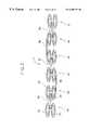 Circumferentially opposed ends of adjacent elements57 are connected by tie members61. One element57 at the center of its one axial side is connected to a circumferentially adjacent element at the center of its one axial side by a short tie member61. In this embodiment, the elements57 are divided into two groups, a first group of57aand57band a second group of57cand57d. The elements in each group are tied to each other by a very short tie member61 whereas an element in one group is tied to an element of the other group by a relatively long tie member61. More specifically,elements57aand57bare tied by a veryshort tie member61b, andelements57cand57dare tied by a veryshort tie member61dwhereaselements57dand57aandelements57band57care tied by relativelylong tie members61aand61c, respectively. Therefore, all the spacings between elements are not equal. The elements are formed to a generally rhombic shape because a relatively large space is defined between opposed sides of adjacent elements. That is, a generally V-shaped or trapezoidal space is defined between opposed sides of adjacent elements.