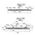 MULTI-LEVEL CONDUCTIVE LINESFIG. 14A illustrates atechnique1400 whereby a conductive line, such as those described hereinabove, is disposed in two distinct layers atop the electronic component1402 (compare502). Theelectronic component1402 has a terminal1404 (compare504). Afirst portion1406aof the conductive line has a first end directly atop the terminal1404, and has a second opposite end. Thefirst portion1406aof the conductive line is in a first layer, surrounded by an insulatingmaterial1420. Asecond portion1406bof the conductive line is in a second layer, atop the first layer, is surrounded by an insulatingmaterial1422, has a first end overlapping the second end of thefirst portion1406a, and has a second opposite end remote from theterminal1404. A spring contact element1410 (compare510) is mounted to a remote (from the terminal1404) portion of the second portion506bof the conductive line. The concept illustrated here can be extended to fabricate conductive lines having portions in more than two layers.