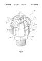 Drill bit10 also includes agage region22, which is located betweenface16 andshank12.Gage pads24, which extend substantially longitudinally along the face ofgage22, may be arranged to be substantially continuous with theircorresponding blades18. Thus,fluid channels20 may also extend substantially longitudinally acrossgage22, betweenadjacent blades18.