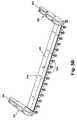 As shown in FIGS. 2,5 and6, anelevator assembly410 comprises acentral support member412 having at one end an L-shapedactuating arm418, and at another end, the rampedsurface414 on aforward arm404 opposed by aguide416. Between theguide416 and the rampedsurface414 is mounted aspring assembly406, which biases theassembly410 rearward toward thehandle assembly16. Thespring assembly406 includes aspring436; astop426, which is attached to thebase module14 and through which theforward arm404 travels; and aflange428, which is integral with theforward arm404. Thespring436 is held between theflange428 and stop426, and biases theassembly410 rearward relative thestop426 through force on theflange428.