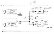 FIG. 1 is a schematic diagram of a ballast circuit coupled to a pair of lamp loads;