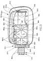 For example,mirror subassembly12 may incorporate a heater pad, for example the heater disclosed in U.S. Pat. No. 5,151,824, a signal light or security light disclosed in U.S. Pat. Nos. 5,669,705; 5,497,305; 5,497,306; 5,371,659; 5,669,704; 5,863,116 and co-pending application Ser. No. 09/102,414 filed June 22, 1998, for VEHICLE EXTERIOR MIRROR SYSTEM WITH SIGNAL LIGHT, co-pending application Ser. No. 09/174,747 for UNIVERSAL EXTERIOR VEHICLE SECURITY LIGHT, filed Oct. 19, 1998, now U.S. Pat. No. 6,149,287, all commonly assigned to Donnelly Corporation of Holland, Mich., the disclosures of which are incorporated herein in their entireties. In addition, other electrical or electronic components may be mounted inhousing12 such as an interface transaction system described in U.S. pending patent application entitled A VEHICLE MOUNTED REMOTE TRANSACTION INTERFACE SYSTEM, filed by Martin DeVries and Niall R. Lynam on Apr. 8, 1998, Ser. No. 09/157,428, now U.S. Pat. No. 6,158,655, and/or an electronic module, which may include one or more electrical or electronic devices such as antennas, circuitry for rain sensors, heating elements and the like as described in pending U.S. patent application entitled MODULAR REARVIEW MIRROR ASSEMBLY INCLUDING ELECTRONIC MODULES, Ser. No. 08/02,228, filed Aug. 23, 1996, now U.S. Pat. No. 6,019,475, by Niall Lynam et al. and which are commonly assigned to Donnelly Corporation of Holland, Mich., the disclosures of which are herein incorporated by reference in their entireties. Other features which may be added to thevehicle mirror subassembly12, include global positioning system antennas and/or receivers, as disclosed in commonly assigned U.S. patent application Ser. No. 08/569,851, filed Dec. 8, 1995, by Roger L. Veldman and Desmond O'Farrell for A VEHICLE GLOBAL POSITIONING SYSTEM NAVIGATIONAL AID, now U.S. Pat. No. 5,971,552; and blind spot detection systems, such as disclosed in U.S. Pat. Nos. 5,786,772 and 5,929,786, the disclosures of which are hereby incorporated herein by reference. Other features which may be incorporated or combined with the features of the present invention include blind spot detectors, sensors, for example control sensors for control circuit including control circuits for electrochromic elements, temperature sensors for controls or indicators, heading sensors; intelligent highway control systems (IHCS); intrusion detectors; antennas, such as the GPS antenna, car phone antennas, radio antenna and the like; microphones; speakers; garage door opener transmitters and antennas; an automatic toll booth payment system, such as a PASSTM system; transceivers; a node and/or controller for a vehicle multiplex and/or car area network; a remote transaction system; or telecommunication devices, such as ONSTAR™ found in General Motors' vehicles of Detroit, Mich., or RESCU™ available form Ford Motor Company of Detroit, Mich. In addition, one or more cameras may be incorporated into the rearview mirror assembly. These cameras may be forward or rearward facing depending on the application. For example, cameras may be used as part of a headlamp control system such as disclosed in U.S. Pat. No. 5,796,094, a rearview vision system for vehicles such as disclosed in U.S. Pat. No. 5,670,935 and in PCT Publication No. 96/38319, AN IMAGE CAPTURING SYSTEM, such as disclosed in pending U.S. patent application Ser. No. 09/199,909, filed Nov. 25, 1998, all commonly assigned to Donnelly Corporation of Holland, Mich. and incorporated by reference herein in their entireties. Also, a headlamp control from the type disclosed in commonly assigned U.S. Pat. No. 5,715,093 issued to Kenneth L. Schierbeek and Niall R. Lynam for AUTOMATIC REARVIEW MIRROR SYSTEM WITH AUTOMATIC HEADLIGHT ACTIVATION, the disclosure of which is hereby incorporated by reference, may be included inmirror subassembly12. For other features, reference is made to U.S. Pat. No. 5,798,575, which is commonly assigned to Donnelly Corporation of Holland, Mich., the disclosure of which is incorporated in its entirety by reference herein.