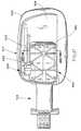 Support arm16 includes anelongated body52, which extend intohousing18 through anopening54 provided inend wall52dofhousing18.Support arm16 further includes a mountingportion58 which includes atransverse bore60 for receiving a mountingbushing62 which pivotally mountssupport arm16 to mountingbracket14.Support arm16 preferably comprises a reinforced elongate box shaped member preferably formed from a suitable plastic, for example thermoplastic polymer resin, or thermoset polymer resin or may be a metal element, such as aluminum or a zinc die casting. As best understood from FIGS. 4 and 5,arm16 includes atop wall52a, opposedside walls52b,52c, and twoend walls52d,52e. Extending transversely betweenside walls52b,52candtop wall52aare a plurality of spaced reinforcingwebs118 which create interstices or openings therebetween. Reinforcingwebs118 increase the stiffness ofarm16 without the corresponding increase in weight normally associated with a solid support arm.