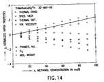 FIG. 14 is a graph of measured properties of a fluid, including CVvalues, as a function of mole concentration of methanol vapor in water vapor.