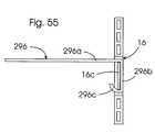 In addition to fastening the top ofwire side panels228 to wireshelves224 orshelf brackets16,wire side panels228 can be provided with added stability by fastening them toadditional wire shelves224 orshelf brackets16. FIGS. 52-54 show various clips that can be used to connect thesupport wires272 ofwire side panels228 and thesupport wires222 ofwire shelves224. FIG. 52 shows an M-shapedclip280 which fits over support wires forwire shelves222 and support wires forwire side panels272. Theprotrusions282 hold the clip in place after the clip is pressed, by hand, over the support wires.