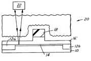 Shown in FIG. 2 is a schematic cross-sectional diagram of a semiconductor integrated circuit microelectronic fabrication otherwise equivalent to the semiconductor integrated circuit microelectronic fabrication whose schematic cross-sectional diagram is illustrated in FIG. 1, but wherein, in a first instance, the blanket gateelectrode material layer16 as illustrated within the schematic cross-sectional diagram of FIG. 1 has been partially etched to form a partially etched blanket gateelectrode material layer16′, while employing the patternedphotoresist layer18 as an etch mask layer, in conjunction with afirst etching plasma20. In a second instance, there is also shown within the schematic cross-sectional diagram of FIG. 2, in conjunction with thefirst etching plasma20, afirst detection apparatus22 which measures the thickness of the blanket gateelectrode material layer16 as illustrated within the schematic cross-sectional diagram of FIG. 1 as it is etched within thefirst etching plasma20 to form the partially etched blanket gateelectrode material layer16′ as illustrated within the schematic cross-sectional diagram of FIG.2.
