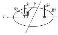 FIG. 5 shows a directivity diagram showing actually measured values of directivity at 2 GHz of a specific example of the antenna apparatus in FIG. 3, with circularbasic plate101 of approximately 75 mm in diameter,antenna element102 of approximately 34.5 mm in length,antenna element103 of approximately 37 mm in length, distance betweenantenna element102 andantenna element103 of approximately ⅛ wavelength,capacitance105 of approximately 2 pF whenswitch circuit104 is OFF.