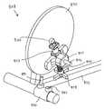 In theembodiment100, theactuators150aand150bare connected to acommon controller190 via standard electrical rotary joints interconnected between thestanchion122 andrespective flywheels133aand133b, and via wires disposed inside theframe110. The wires extend from contacts mounted on therearward stanchion122 to thecontroller190 mounted on top of theforward stanchion121. Asingle input member193 on thecontroller190 is operable to change the length of bothactuators150aand150b, although separate input members may be provided to facilitate discrete changes in the lengths of theactuators150aand150b, if so desired.