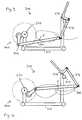 Thehandle bar270 and the forward stanchion cooperate to define a first pivot axis A. Thehandle bar270 and theintermediate link276 cooperate to define a second pivot axis B which moves in an arc about the first pivot axis A. Astop277 is mounted on the forward stanchion to limit forward pivoting of the second pivot axis B. Theintermediate link276 and thefoot supporting link260 cooperate to define a third pivot axis C which pivots about the second pivot axis B. Thefoot supporting link260 cooperates with thecrank pin246 to define a fourth pivot axis Y which rotates about the crank axis X.