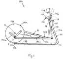 Those skilled in the art will recognize that other linkage assemblies may be substituted for those shown without departing from the scope of the invention. For example, certain prior art references suggest that a roller arrangement may be substituted for the suspension links on theapparatus100. Those skilled in the art will also recognize that the suspension links170aand170bmay be rotatably connected to asleeve127 which, in turn, is movably mounted on theforward stanchion121 to facilitate changes in the inclination of foot exercise motion. On theembodiment100 shown, a lockingknob128 is movable in a first direction to free thesleeve127 for movement along thestanchion121, and is movable in an opposite, second direction to lock thesleeve127 in place at a desired height above the floor surface. Those skilled in the art will recognize that other adjustment assemblies, including a motorized lead screw, may be used in place of that shown in FIGS. 1-4.