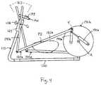 Eachadjustable crank130aor130bfurther includes a respectivesecond member140aor140bwhich has a first portion rotatably connected to a respectivefirst member133aor133b. A second, discrete portion of eachsecond member140aor140bis rotatably connected to a rearward portion of a respectivefoot supporting link180aor180b. These points of connection are designated as Y in FIGS. 1-4 and cooperate with the crank axis X to define a crank radius (measured linearly therebetween).