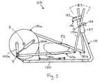 FIGS. 1-2 show points on thefoot supporting links180aand180btraveling through first, relatively smaller paths P1 when the pivot axis Y is relatively closer to the crank axis X. FIGS. 3-4 show points on thefoot supporting links180aand180btraveling through second, relatively larger paths P2 when the pivot axis Y is relatively farther from the crank axis X. Despite the change in size, the relatively larger paths P2 remain generally similar to the paths P1 in terms of both shape and orientation relative to theframe110. Thehandles177aand177bsimilarly travel through relatively smaller paths Z1 when the pivot axis Y is relatively closer to the crank axis X, and through relatively larger paths Z2 when the pivot axis Y is relatively farther from the crank axis X.