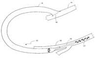As shown in FIG. 4, another procedure according to the invention enables an existinggraft12 to be salvaged by insertion ofcatheter18 through the wall of existinggraft12, which is desirable in situations in which clotting associated with a failing graft is not too extensive, as is exemplified by the partiallyoccluded opening15 intovein20 shown in FIG.5. As shown in FIG. 6, according to this procedure,graft12 is percutaneously cannulated by passage of aneedle11 through anincision30 intograft12 andvein20, and aguidewire13 is passed throughneedle11 intovein20. Partially occluded vein opening15 is dilated by angioplasty, and asheath17 is inserted percutaneously through graft12 (FIG. 7) and intovein20.Catheter18 withinsheath17 includes a collapsible funnel-shapedportion19. Whensheath17 is removed fromgraft12 andvein20, funnel-shapedportion19 opens up withingraft12 as is shown in FIG.4.Holes22 ofcatheter18 are positioned within vein20 (FIG.7). Becausecatheter18 has a funnel configuration, the outer wall of funnel-shapedportion19 ofcatheter18 engages the inner wall ofgraft12. Funnel-shapedportion19 ofcatheter18 lies withinpre-existing graft12, and the slim end (tail) ofcatheter18 lies within the interior ofvein20. Blood bypasses the interconnection ofgraft12 andcatheter18 by flowing throughcatheter18 and out ofholes22.