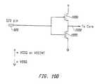 FIG. 9A shows a circuit diagram of an output driver, tolerant of high voltage at an I/O pad, which has dual power supply pins;