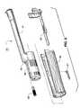 Gas System, Recoil Spring & Tube Cover Assembly—Figure3The gas system, recoil spring andtube cover assembly90 is shown in FIG.3 and includes aforearm frame95 which supports aforearm96 secured by alatch97 securable to the forearm frame.Cover91 has a tubularforward end94 which extends about the barrel in an area of the gas ports and assists to secure and stabilize the barrel. Expansion springs, not shown, may be provided within thetubular member94 to assist in maintaining the barrel particularly when the barrel is heated due to repeated firing.Cover91 is secured into place bybolt98 received in abore99 in the forward end of therecoil spring tube41.