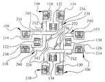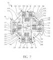 Each ofbus bars238 and240 have along section252 with anend plate254 attached thereto, ashort section256 anend plate258 attached thereto, and alead attaching member260 extending from thelong section252. Themember260 permits attaching to one oflead115 or119. Theterminals114 and118 are coupled to theend plates254 and258. Withbus bar238 theterminals114 will be coupled to the top side of theplates254 while withbus bar240, theterminals118 will be coupled to the bottom side of theplates258. This use of both sides ofplates254 and258 permits the bus bar to be used asbus bar238 orbus bar240. Additionally, the long andshort sections252 and256 are bent in the same direction at the junction withplates254 and258 so that theplates254 and258 lie in a different plane than the long andshort sections252. This bending of the bus bars238 and240 enables the bus bars to be positioned in different planes when fully assembled, thus permitting the overlapping configuration. In other words, thebent bus bars238 and240 permit the bus bars to be overlapped while not touching.