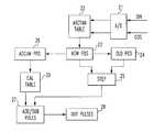 Referring to FIG. 2, calibration data would typically be saved in a file inflash memory20. The reference marker signal from the encoder is used to initialize the lookup table. The following is a description of one cycle within the encoder multiplier. One cycle (the time between interrupts) is 0.5 microseconds. An analog-to-digital converter21 samples each of the SIN and COS signals from the encoder. Using the converter outputs as addresses to an arctangent table22, the current position (transition count) of the encoder is determined and saved in aregister23 in a field programmable gate array (FPGA). The FPGA compares the current position (transition count) with the position during the previous encoder cycle stored at24 to determine how far the encoder has moved and saves the incremental distance inregister25. The incremental distances are accumulated in theabsolute position register26. The value in the absolute position register26 is used with the calibration table20 to determine if pulses should be added or subtracted at27 from the incremental encoder pulse count inregister25 and output at28 to the control system.